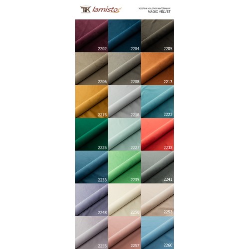 dowolny z wzornika kolorów strona z tkaninami- tkaniny mir-tex24 na zdjęciu: welur czarny wysyłamy próbki po uprzednim kontakcie |
