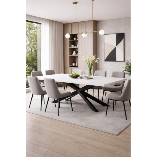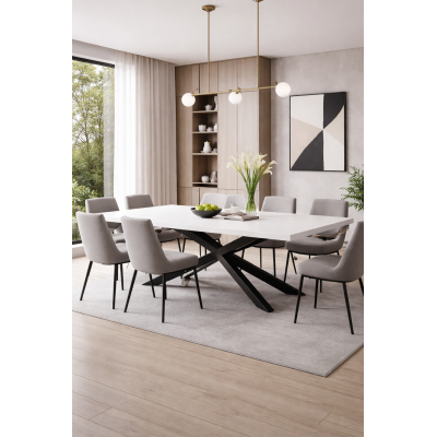 PROSTOKĄTNY BIAŁY STÓŁ ROZKŁADANY DO JADALNI NOGI PAJĄK S-47