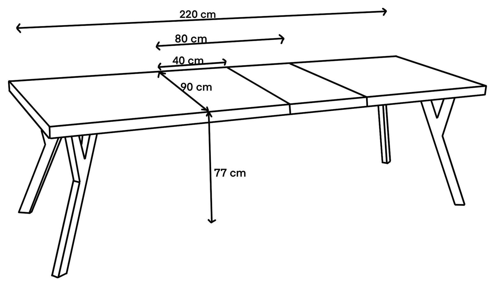 STÓŁ ROZKŁADANY L-35 BLAT DĄB CRAFT, NOGI CZARNE