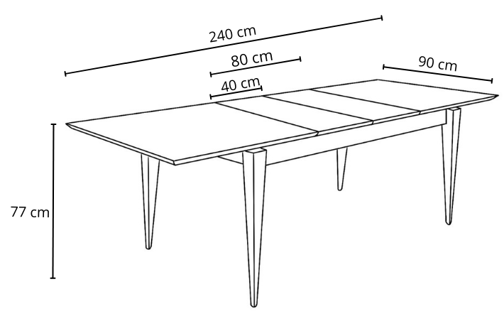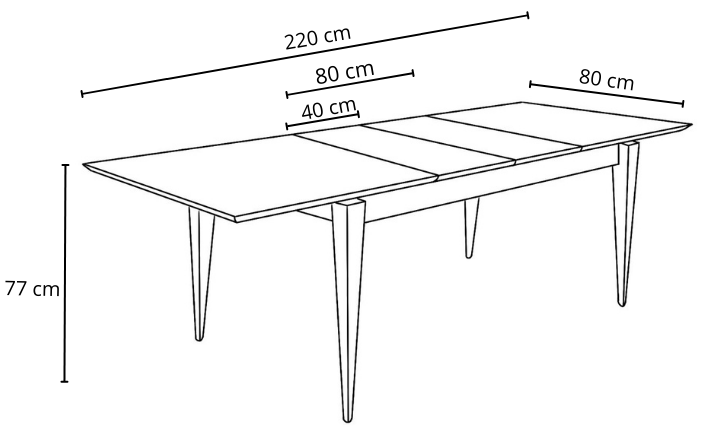 Do każdego stołu dodawana jest instrukcja wraz z kompletem śrub. Wkładki przedłużające stół przechowuje się poza stołem. Nie ma możliwości ukrycia ich w złożonym stole.