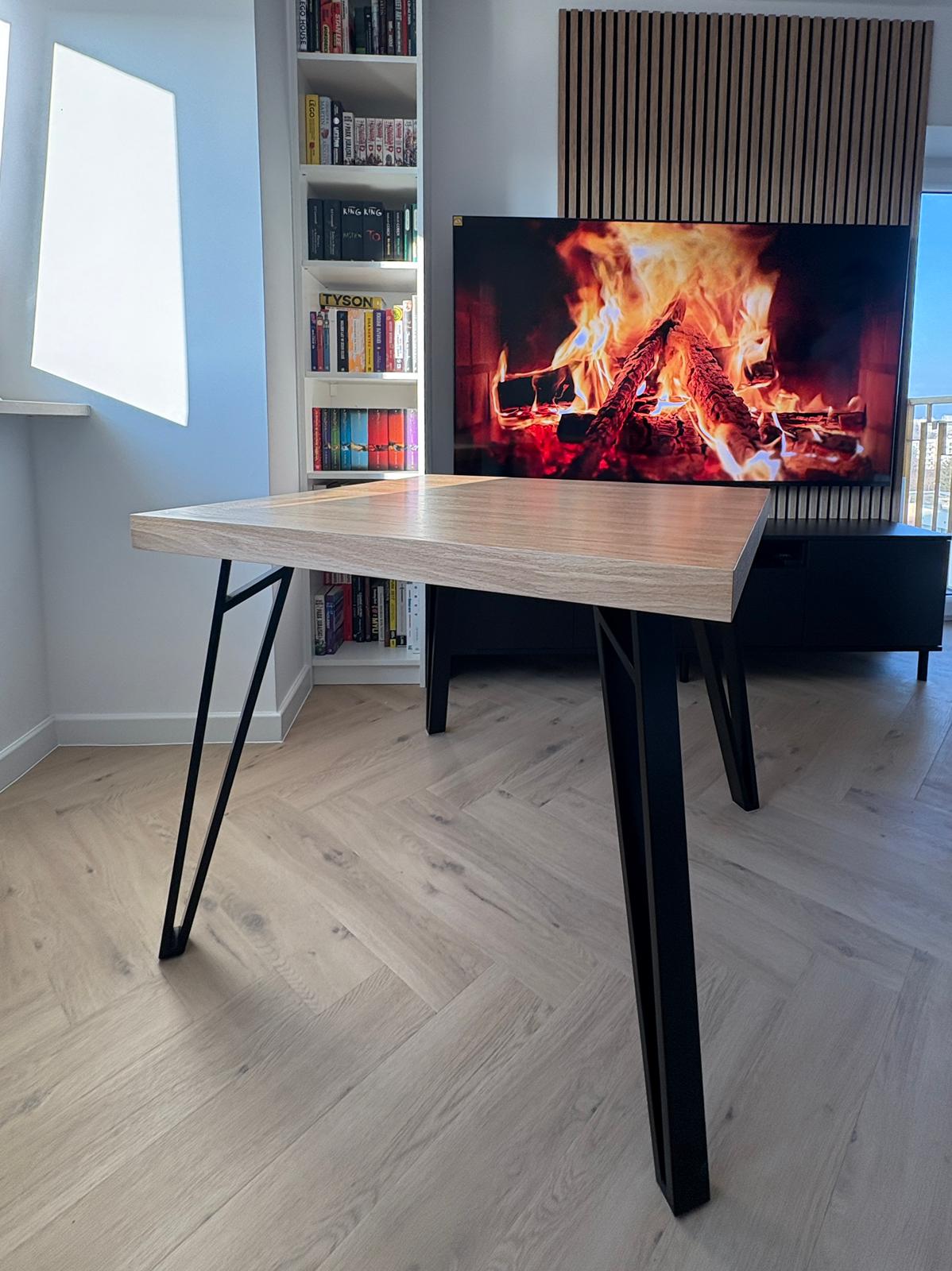 STÓŁ ROZKŁADANY L-32 BLAT DĄB SŁONECZNY, NOGI METALOWE CZARNE