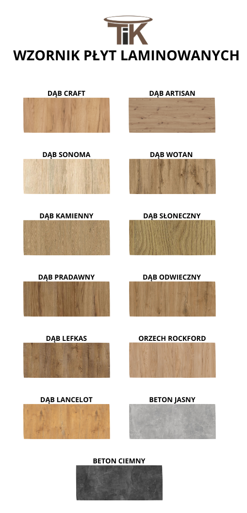 podstawowy: dąb słoneczny nasz wzornik: wzornik blatów laminowanych -możliwość dostosowania się do wymagań kolorystycznych -możliwość wyboru koloru z wzornika kolorów (wpisanie w wiadomości do sprzedającego koloru lub kontakt z nami -601 421 753) |