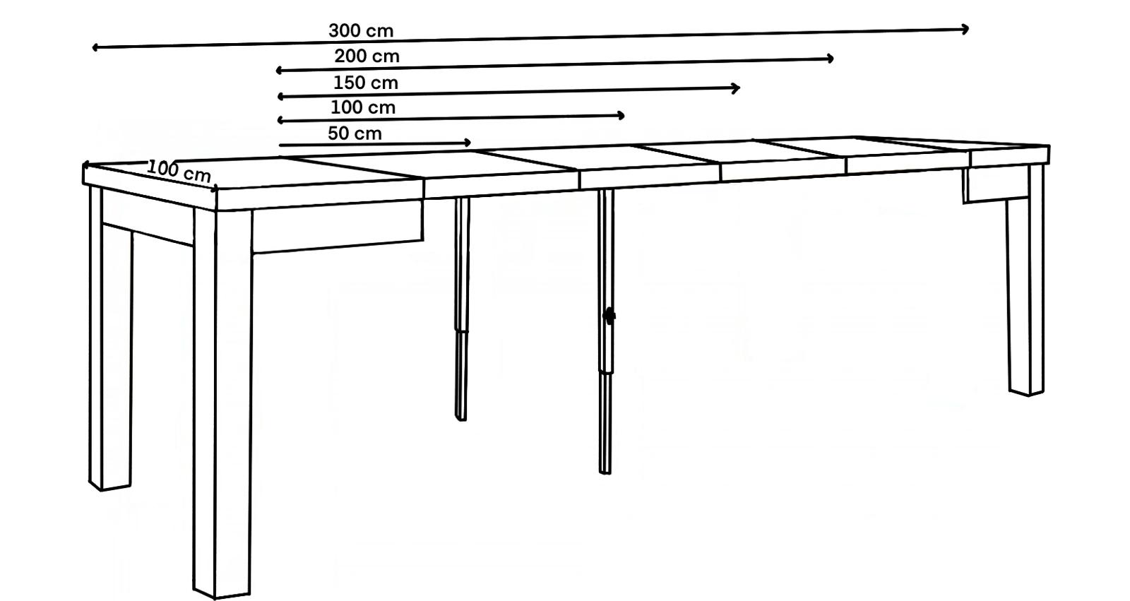 W przypadku stołów z 4 wkładkami, na prowadnicy zamontowane są dodatkowe, składane, metalowe nogi podtrzymujące środek stołu. Prowadnica umożliwia rozłożenie stołu przez jedną osobę.