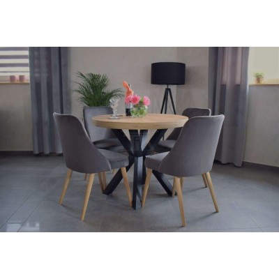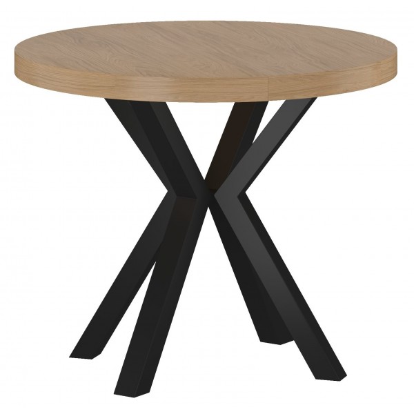STÓŁ OKRĄGŁY ROZKŁADANY L-56M BLAT DĄB CASELLA NATURALNY EGGER, NOGI MATALOWE