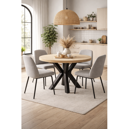 STÓŁ OKRĄGŁY ROZKŁADANY S-46 OKLEINA NATURALNA, NOGI METALOWE CZARNE