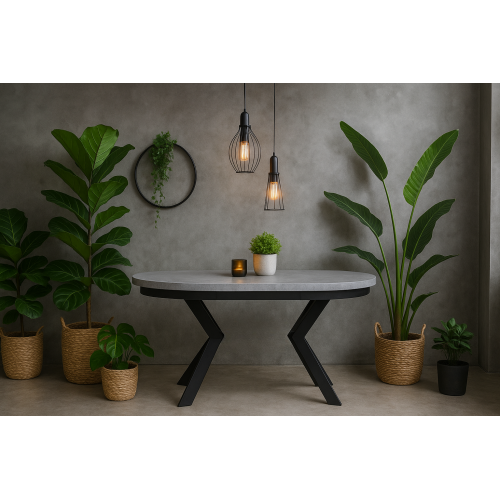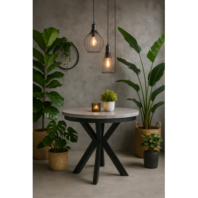 STÓŁ OKRĄGŁY ROZKŁADANY L-56MG, BLAT BETON JASNY, NOGI METALOWE