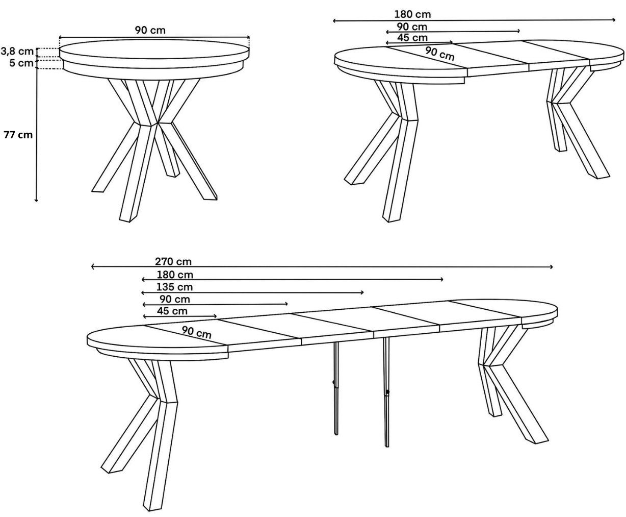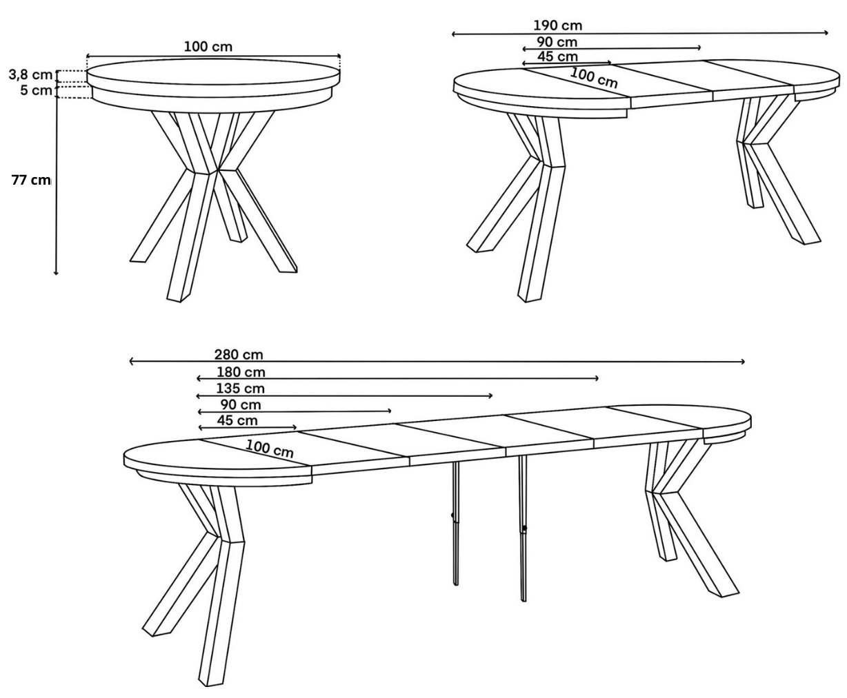 Do każdego stołu dodawana jest instrukcja wraz z kompletem śrub. Wkładki przedłużające stół przechowuje się poza stołem. Nie ma możliwości ukrycia ich w złożonym stole.