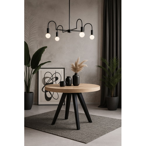 STÓŁ OKRĄGŁY ROZKŁADANY L-80G BLAT DĄB HALIFAX NAT, NOGI BUKOWE CZARNE LUB BIAŁE