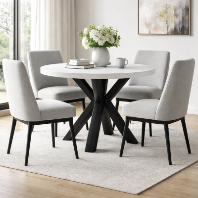 STÓŁ OKRĄGŁY ROZKŁADANY S-46 BIAŁY NA OKLEINIE DĘBOWEJ, NOGI METALOWE CZARNE