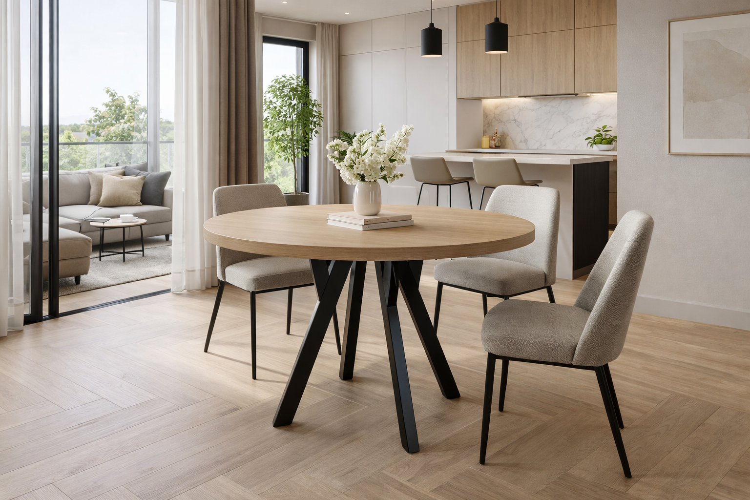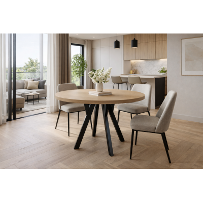 STÓŁ OKRĄGŁY ROZKŁADANY L-3 BLAT JESION NAVARRA EGGER, NOGI CZARNE