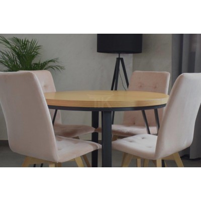 STÓŁ OKRĄGŁY ROZKŁADANY DĄB NATURALNY NOGI CZARNE Z MASKOWNICĄ S-43MC