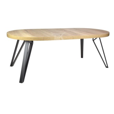 STÓŁ OKRĄGŁY ROZKŁADANY L-3M BLAT DĄB HALIFAX , NOGI METALOWE CZARNE
