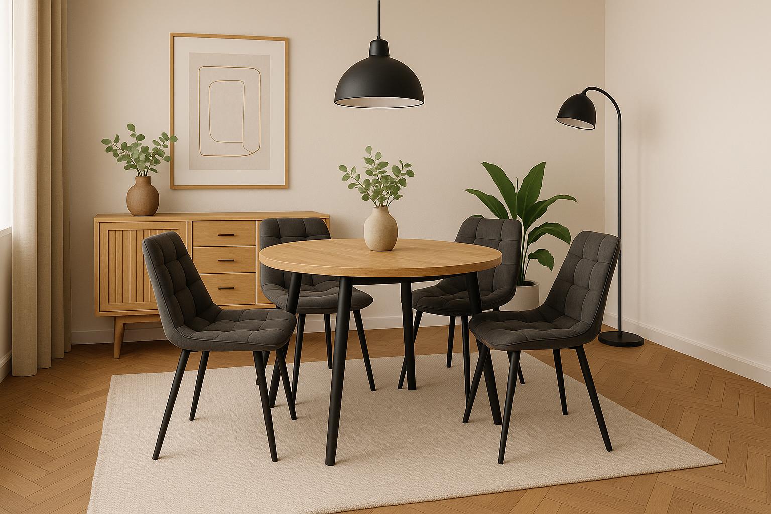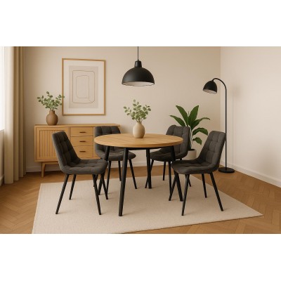 STÓŁ OKRĄGŁY ROZKŁADANY S-85 OKLEINA NATURALNA-DĄB NATURALNY, NOGI BUKOWE CZARNE