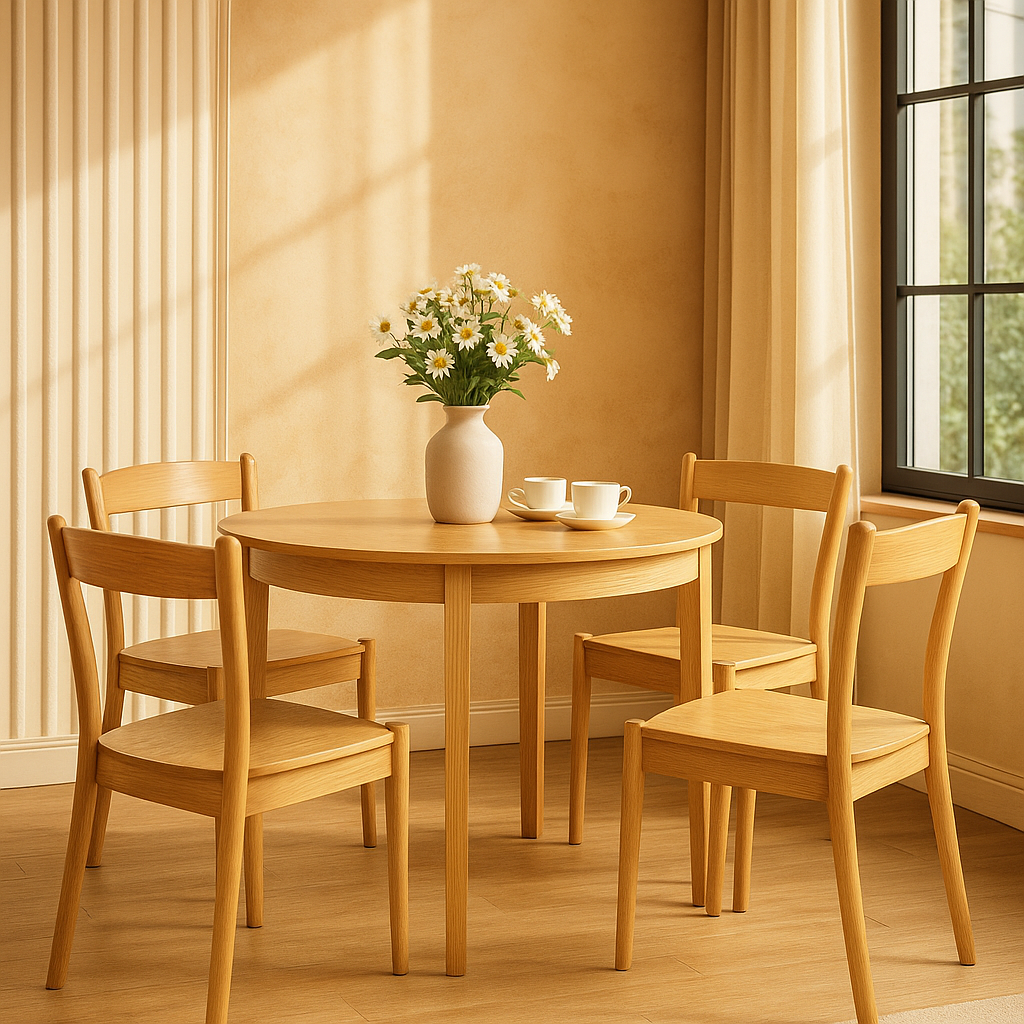 STÓŁ OKRĄGŁY ROZKŁADANY S-60 OKLEINA NATURALNA-DĄB NATURALNY, NOGI DĘBOWE