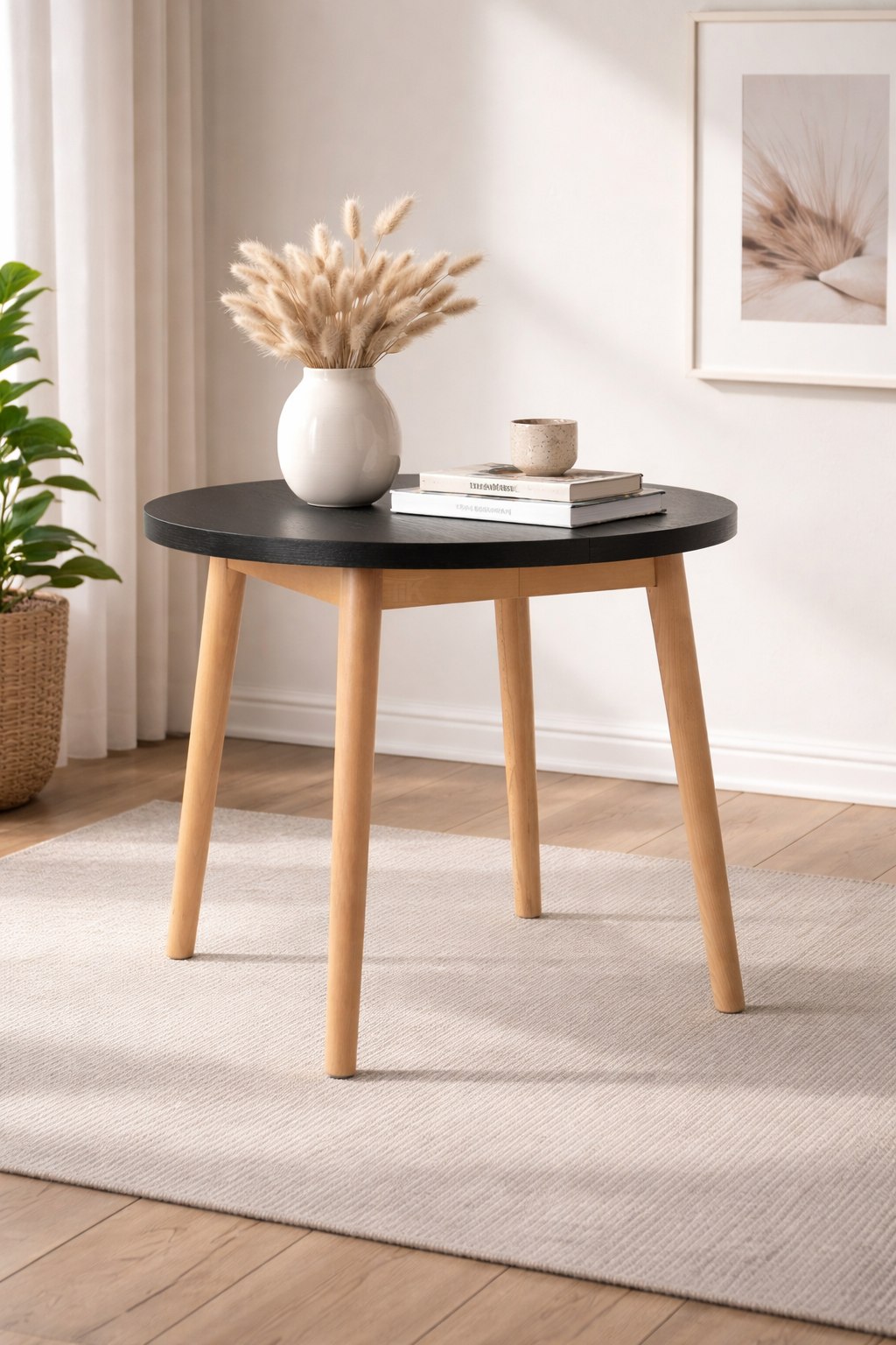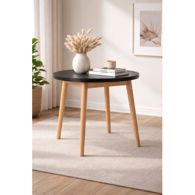 STÓŁ OKRĄGŁY ROZKŁADANY CZARNY NOGI DREWNIANE S-85