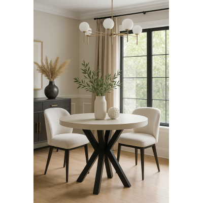 STÓŁ OKRĄGŁY ROZKŁADANY L-56M BLAT KASZMIR - PŁYTA MDF, NOGI METALOWE CZARNE
