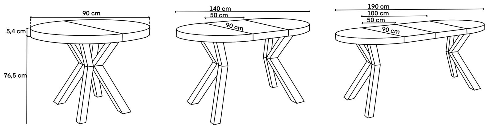 Do każdego stołu dodawana jest instrukcja wraz z kompletem śrub. Wkładki przedłużające stół przechowuje się poza stołem. Nie ma możliwości ukrycia ich w złożonym stole.