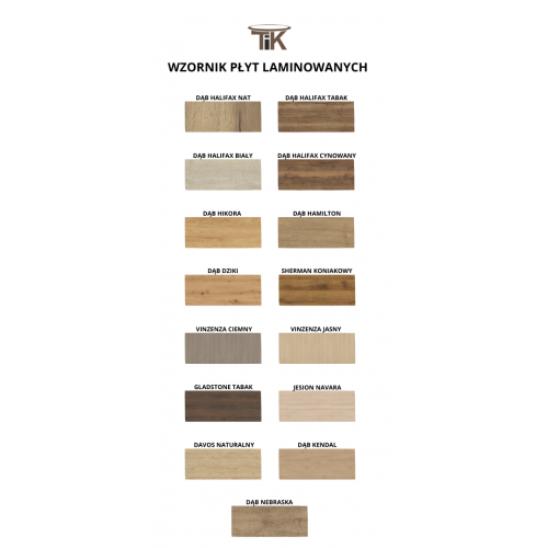 podstawowy: dąb hicora nat. firmy Egger na zdjęciu: dąb hicora nat. firmy Egger nasz wzornik: wzornik blatów laminowanych możliwość wyboru koloru po uprzednim kontakcie |