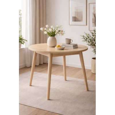 ELEGANCKI STÓŁ OKRĄGŁY ROZKŁADANY JESION NAVARRA L-85 NOGI DĘBOWE