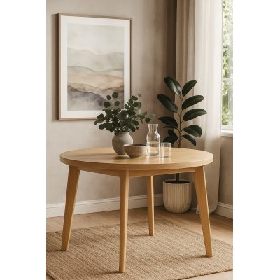 STÓŁ OKRĄGŁY ROZKŁADANY S-83 BLAT FORNIROWANY, NOGI DĘBOWE