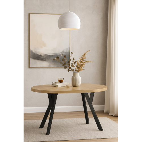 STÓŁ OKRĄGŁY ROZKŁADANY L-3 DĄB HICORA NAT, NOGI CZARNE MATOWE