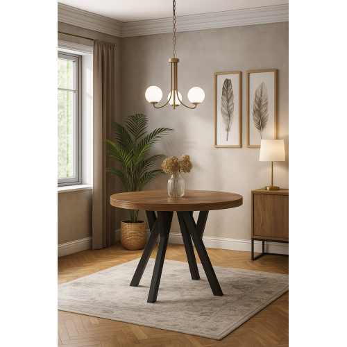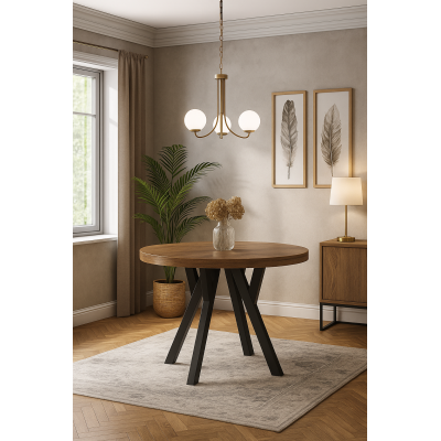 STÓŁ OKRĄGŁY ROZKŁADANY L-3 DĄB HALIFAX CYNOWANY, NOGI CZARNE MATOWE