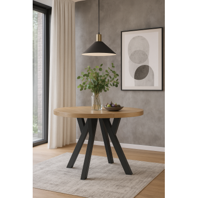 STÓŁ OKRĄGŁY ROZKŁADANY L-3 DĄB KAMIENNY, NOGI CZARNE MATOWE