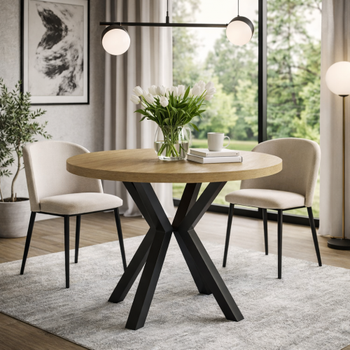 STÓŁ OKRĄGŁY ROZKŁADANY L-56M DĄB KAMIENNY, NOGI METALOWE CZARNE