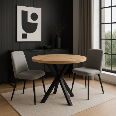 STÓŁ OKRĄGŁY ROZKŁADANY L-56M DĄB ARTISAN, NOGI METALOWE CZARNE