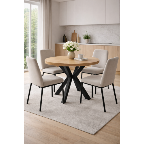 STÓŁ OKRĄGŁY ROZKŁADANY L-56M ORZECH ROCKFORD NATURALNY, NOGI METALOWE CZARNE