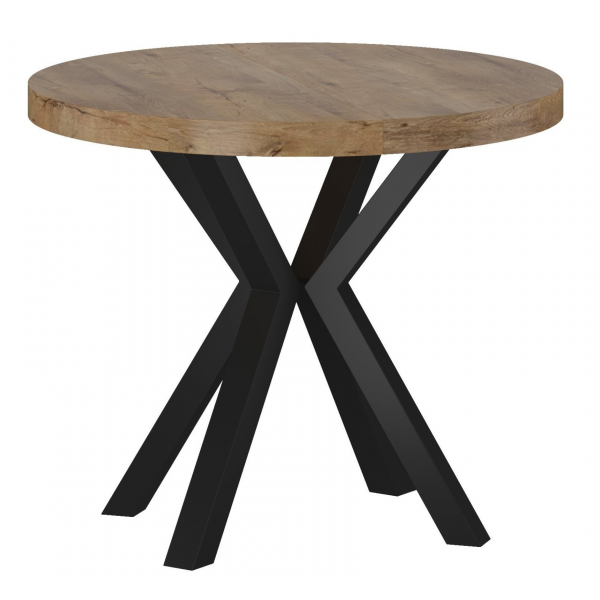 STÓŁ OKRĄGŁY ROZKŁADANY L-56M DĄB LEFKAS CIEMNY, NOGI METALOWE CZARNE