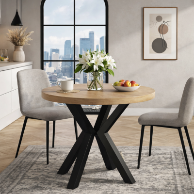STÓŁ OKRĄGŁY ROZKŁADANY DĄB NEBRASKA NATURALNA NOGI CZARNE L-56M