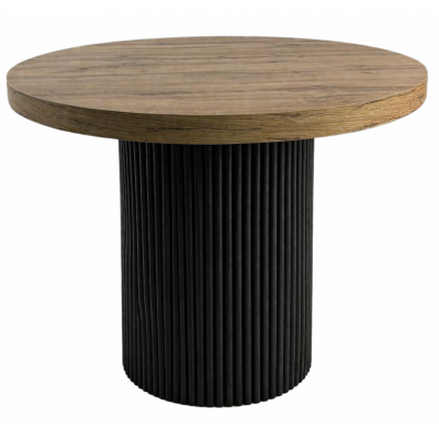 Stół okrągły rozkładany L-98 w dekorze dąb Wotan to nowoczesny mebel, który przyciąga uwagę wyjątkową podstawą w formie lamelowej kolumny. Ciepły odcień drewna z wyraźnym usłojeniem nadaje wnętrzu naturalności i elegancji, a czarna metalowa konstrukcja podkreśla jego loftowy charakter