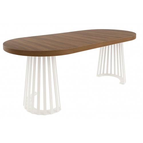 STÓŁ OKRĄGŁY ROZKŁADANY L-72, BLAT DĄB FRANKLIN KARMELOWY, NOGI METALOWE BIAŁE
