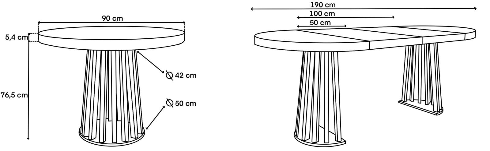 Do każdego stołu dodawana jest instrukcja wraz z kompletem śrub. Wkładki przedłużające stół przechowuje się poza stołem. Nie ma możliwości ukrycia ich w złożonym stole.