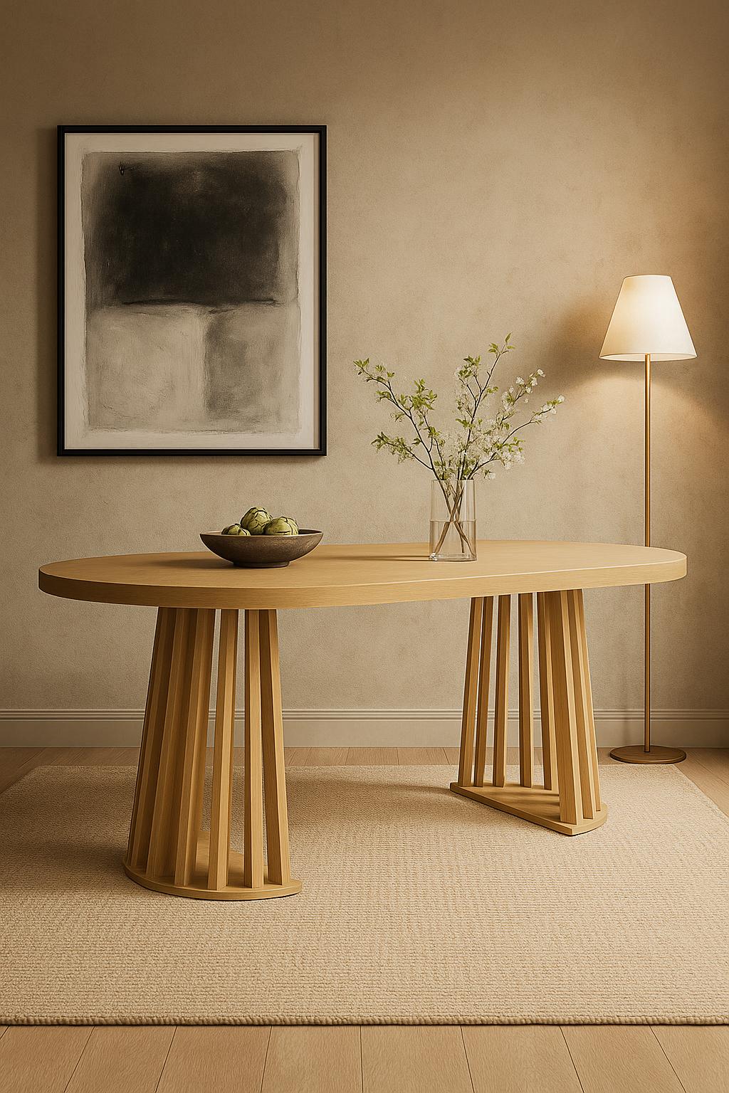 Stoły wykonywane są ręcznie, z naturalnych materiałów. Ze względu na specyfikę produkcji mebli dopuszczalne są niewielkie różnice wysokości stołu o ok. 2 cm, co nie wpływa na jakość ani stabilność produktu.