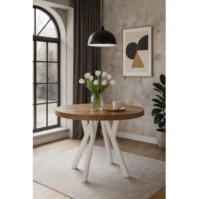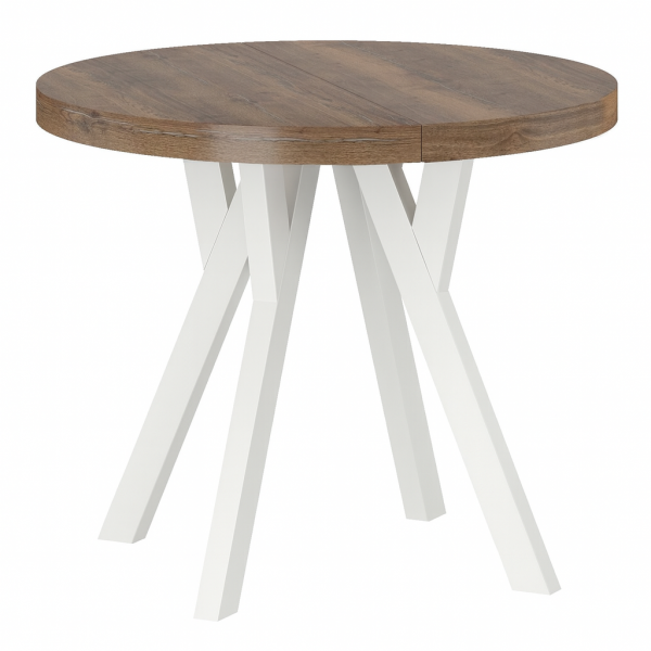 STÓŁ OKRĄGŁY ROZKŁADANY L-3 DĄB HALIFAX CYNOWANY, NOGI BIAŁE MATOWE