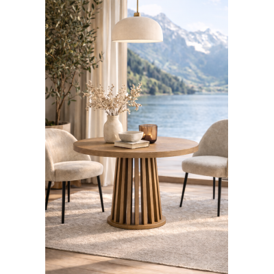 Stoły wykonywane są ręcznie, z naturalnych materiałów. Ze względu na specyfikę produkcji mebli dopuszczalne są niewielkie różnice wysokości stołu o ok. 2 cm, co nie wpływa na jakość ani stabilność produktu.