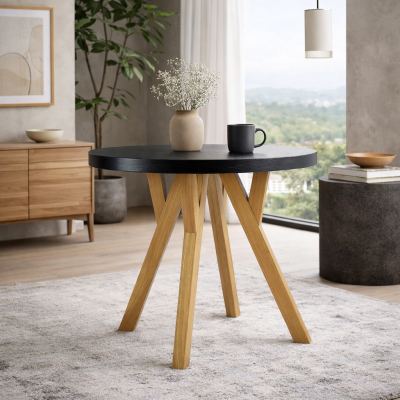 STÓŁ OKRĄGŁY ROZKŁADANY CZARNY Z DĘBOWYMI NOGAMI S-3