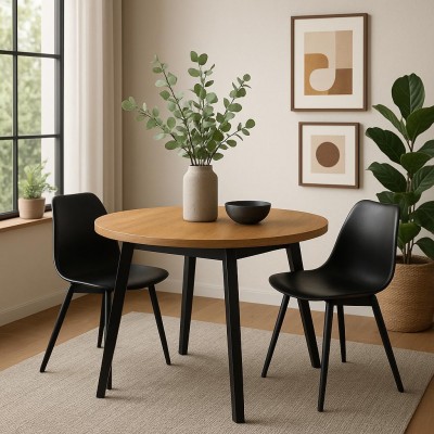 STÓŁ OKRĄGŁY ROZKŁADANY S-84 OKLEINA DĘBOWA-DĄB NATURALNY, NOGI BUKOWE CZARNE