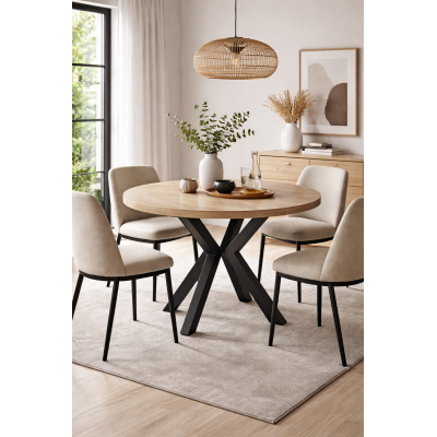 STÓŁ OKRĄGŁY ROZKŁADANY L-56 DĄB SONOMA, NOGI CZARNE METALOWE- szybka wysyłka